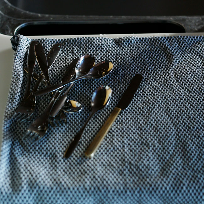 個人的な印象で、このエジプトシリーズのティータオルは、割とシャキッとしたイメージがあると思っていたけれど、このホワイトに関しては一色で織りの特徴が際立つせいか、他の色のジョージジェンセンのティータオルよりもぽこぽこ感が強くて、どちらかというとほんわかしたナチュラルな雰囲気です。